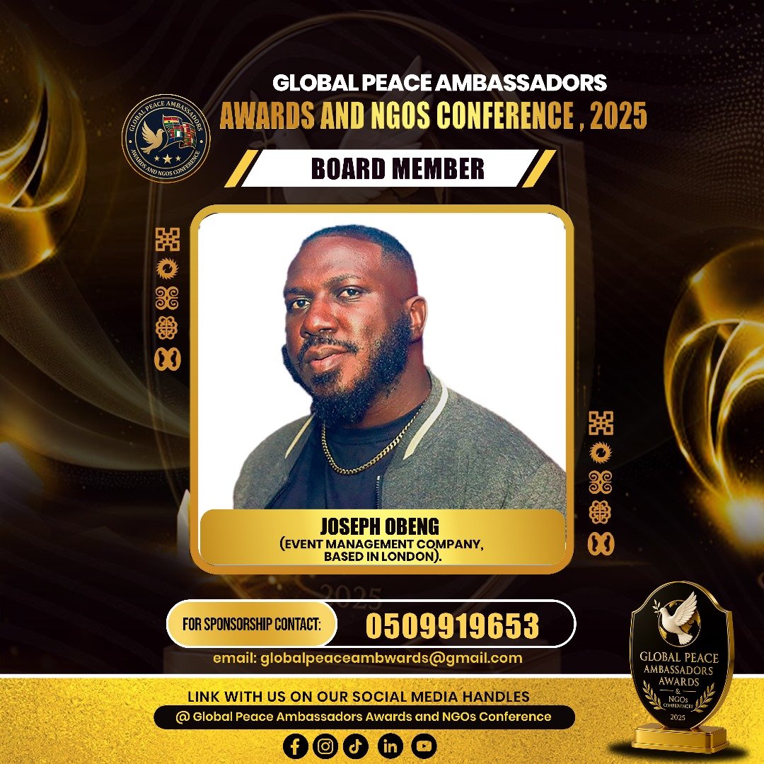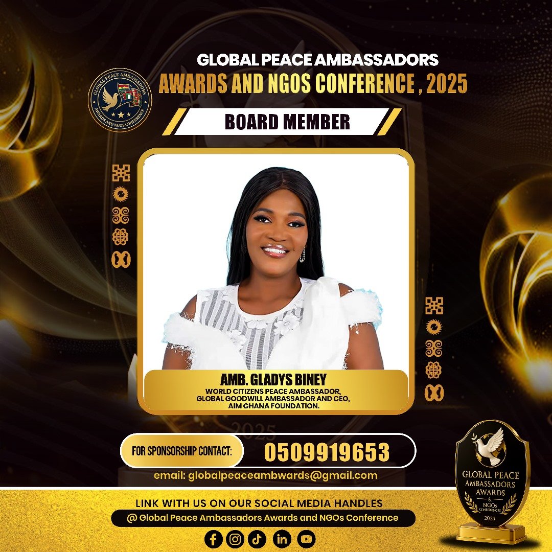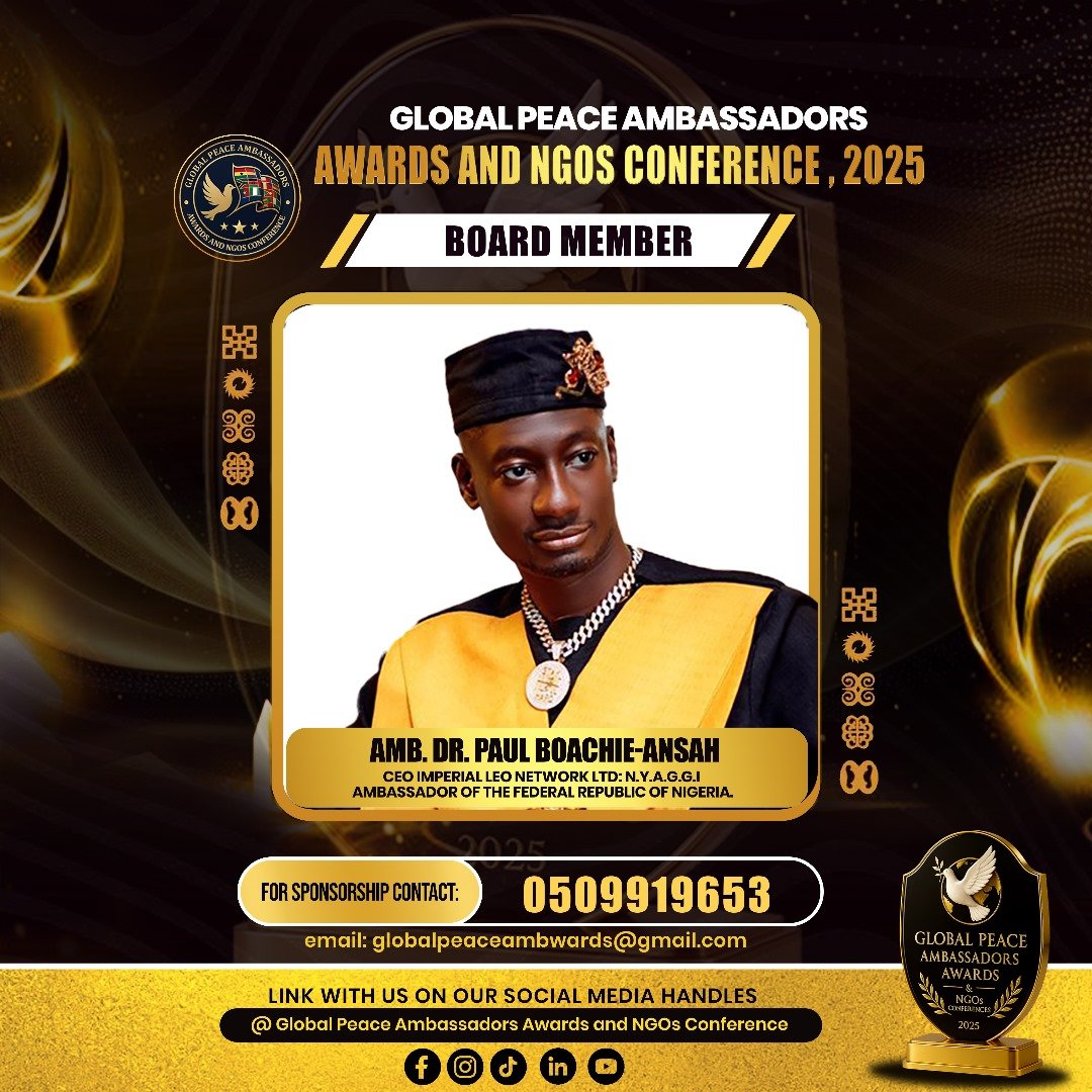 The Global Peace Ambassadors Awards and NGOs Conference 2025 is a two-day international gathering aimed at celebrating, connecting, and empowering peacebuilders, NGOs, and corporate institutions contributing to sustainable peace and development. The event will host 500–700 participants from Ghana and abroad, including policymakers, diplomats, business leaders, and youth advocates.