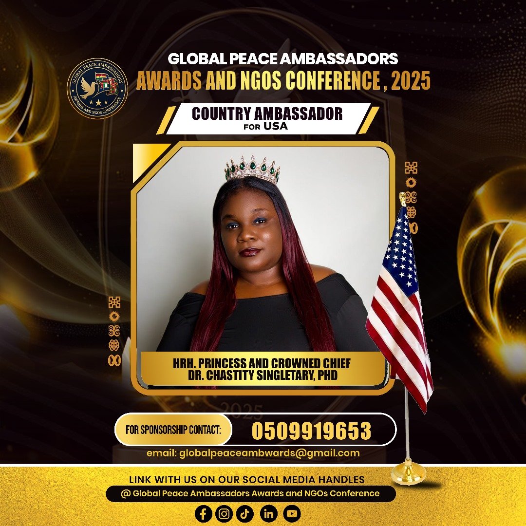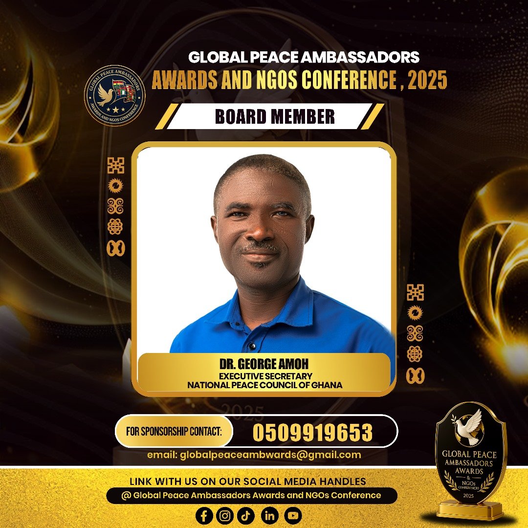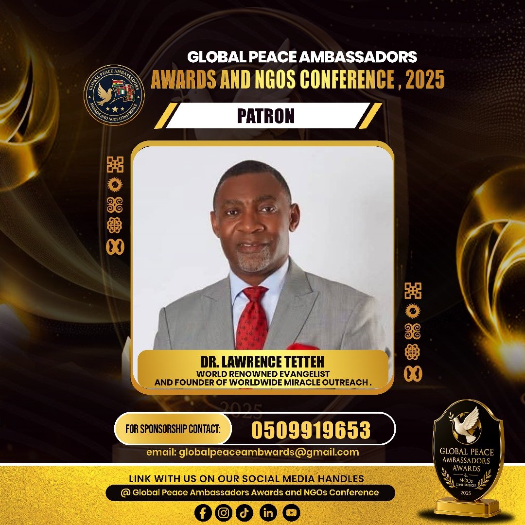 The Global Peace Ambassadors Awards and NGOs Conference 2025 is a two-day international gathering aimed at celebrating, connecting, and empowering peacebuilders, NGOs, and corporate institutions contributing to sustainable peace and development. The event will host 500–700 participants from Ghana and abroad, including policymakers, diplomats, business leaders, and youth advocates.